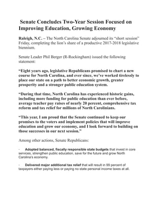 Sen leader Phil Berger on biennium budget | PDF