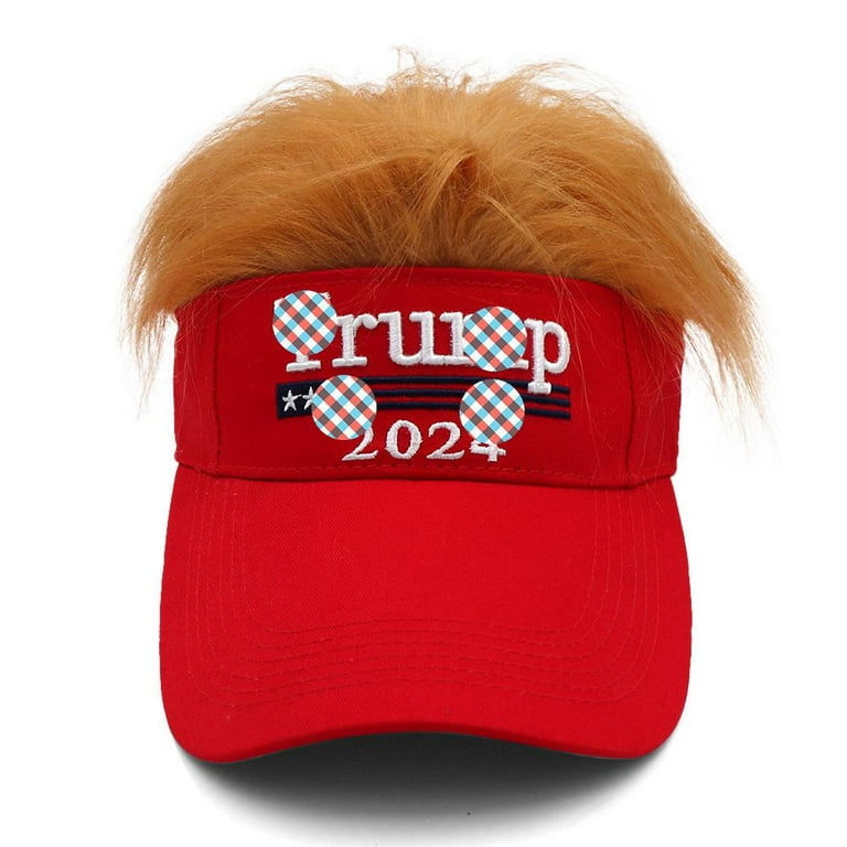 Trump 2024 Hat with Hair Wig Sun Visor Embroidered Adjustable